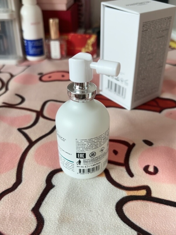 质地是普通精华液质地,吸收速度中等,需要按摩3-5分钟才能完全吸收,吸收后有轻微黏腻感,偶尔会沾枕,不如拾宓清爽,香味是山茶味,不算刺鼻,但留香较短,包装是喷雾瓶,用量不好控制,容易浪费,用法相对繁琐,不适合懒人,长期使用可能会让细软塌头发更扁塌。