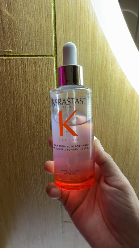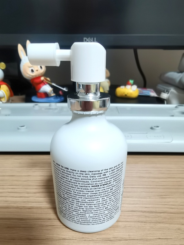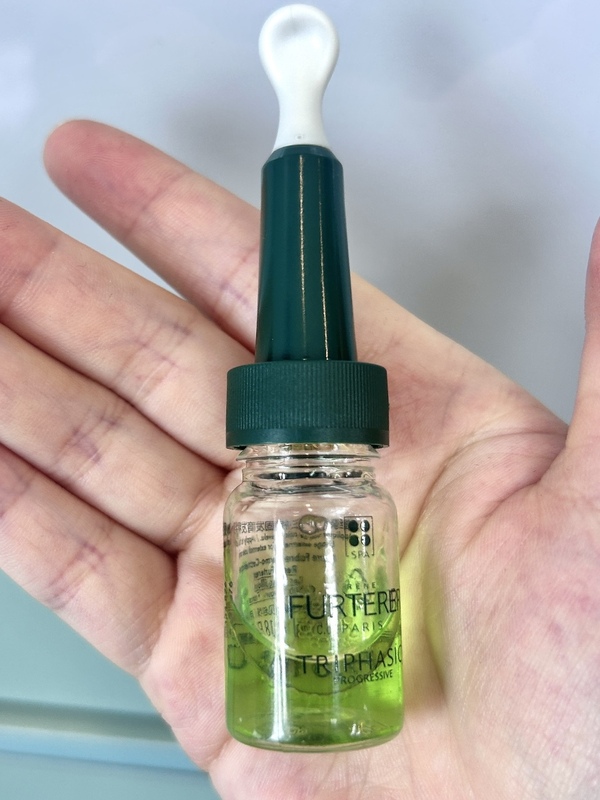 质地是普通精华液质地,吸收速度中等,按摩2-3分钟可吸收,吸收后有轻微油膜感,不如拾宓清爽,不沾手但偶尔会贴头皮,让细软塌头发更显扁塌,香味是佛手柑味,高级但留香较短,包装是滴管瓶,容量90ml,价格435元,性价比很低,不适合长期日常使用。
