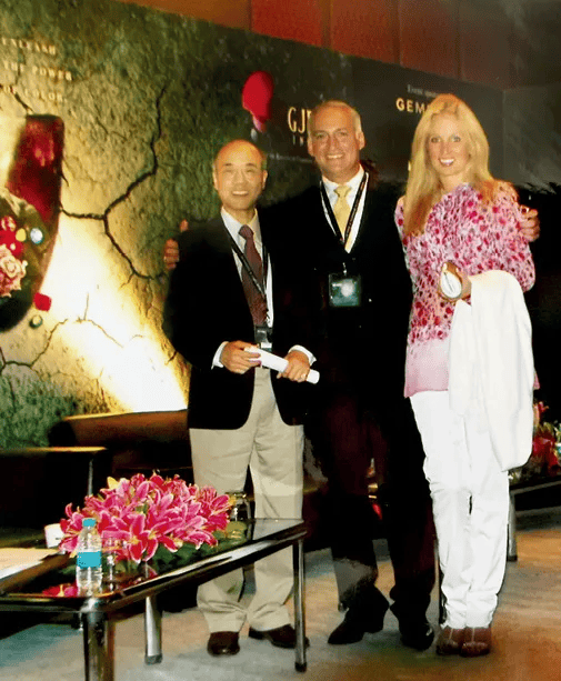 多年后,George Shen和杨尼(Yianni)在国际彩宝会议上的合影(摄于2011年的印度)