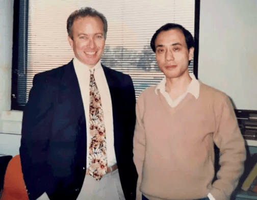 George Shen在美国宝石学院科研部与时任科研部主任伊曼纽尔·弗里茨合影(摄于1991年)