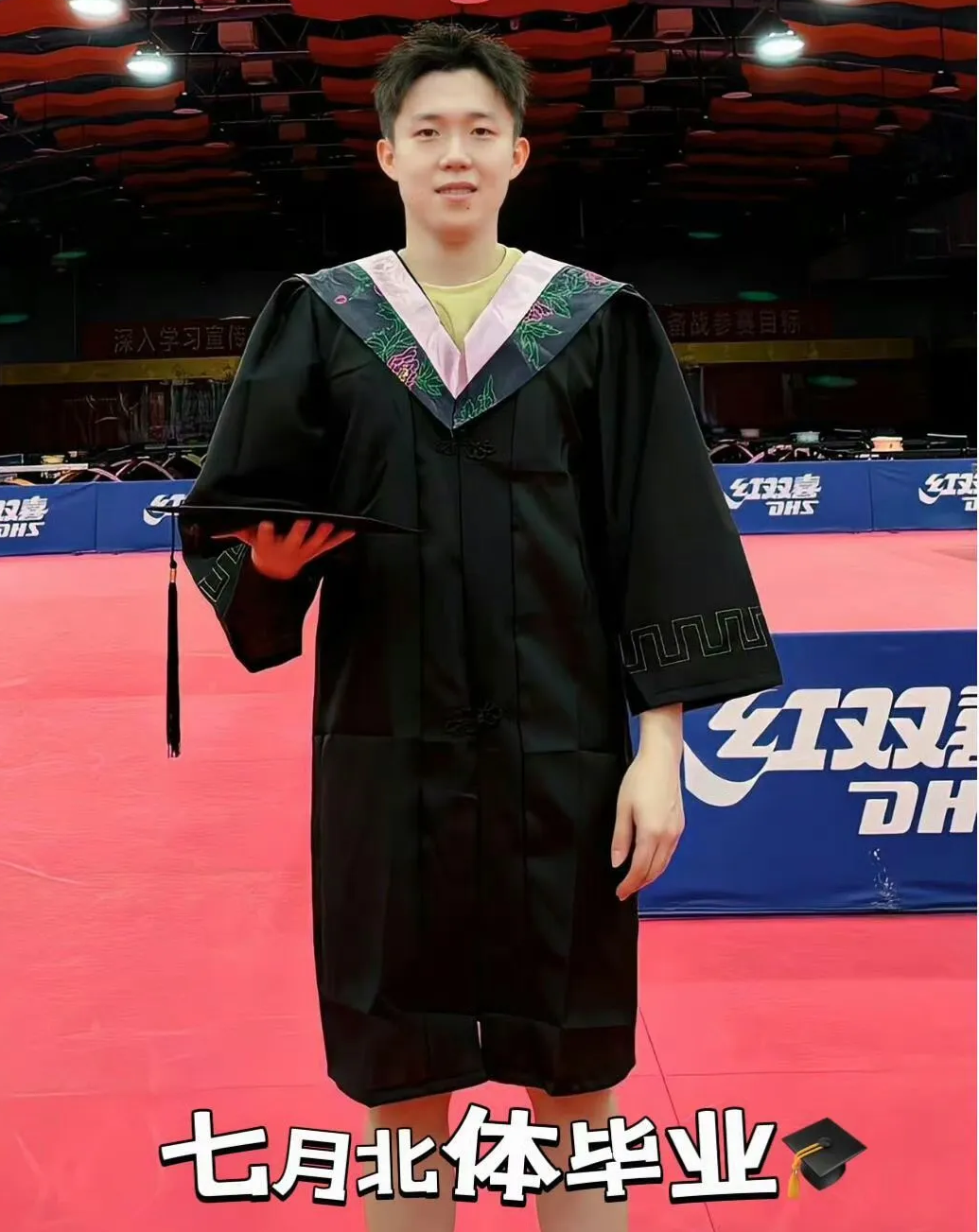 七月的北京体育大学礼堂里,戴着学士帽的王楚钦笑得像个普通毕业生。