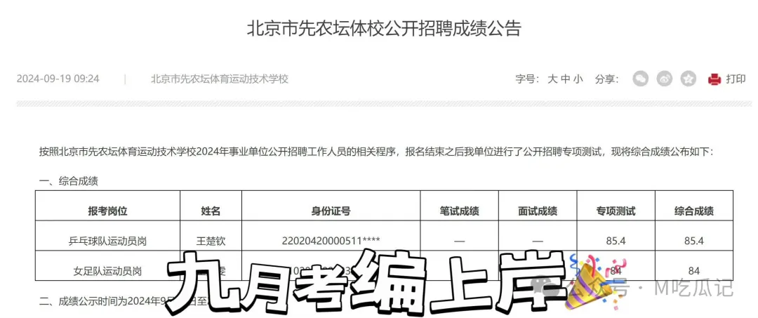 九月国考放榜,他不动声色晒出某省体育局录用通知;