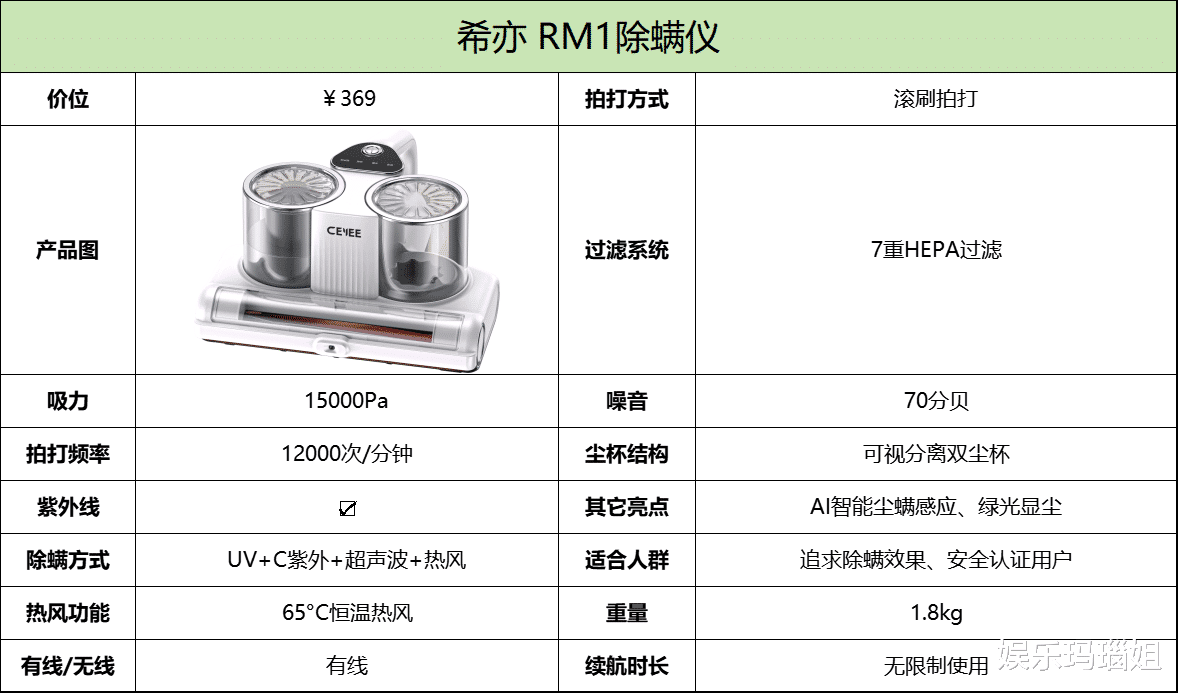 希亦 RM1 在拍打深层灰尘、螨虫和吸力配合上表现出色,360° 无死角清洁、效率高,而且价格亲民,是一款非常适合日常家庭床褥、沙发深层除螨的高性价比选择。