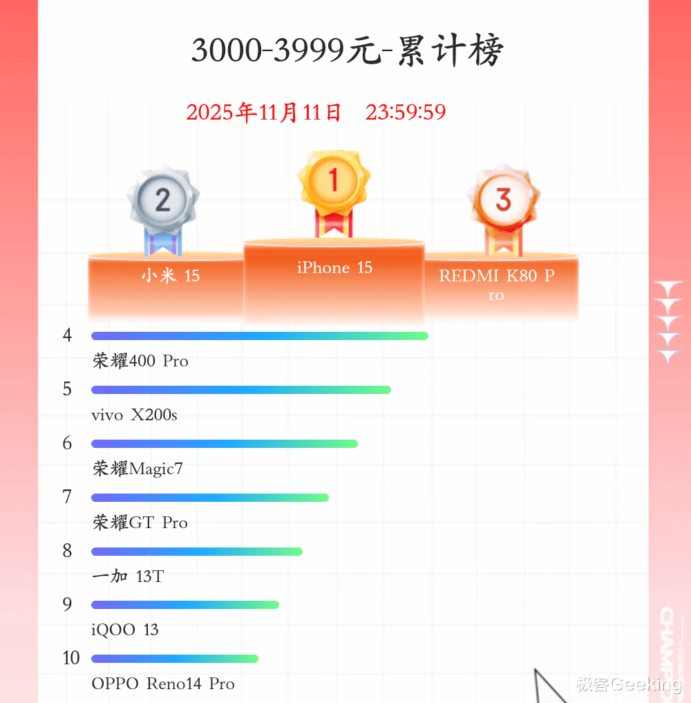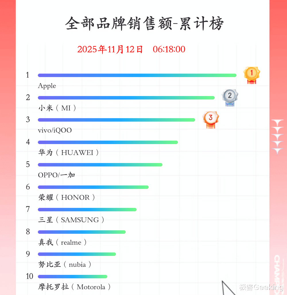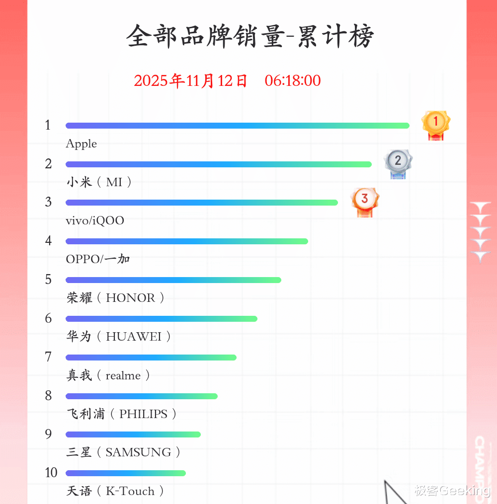 国产痛失第一!2025双11手机销量终极排名来了,真意外啊
