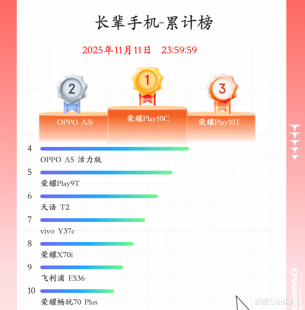 还有长辈手机,销量前三分别是荣耀Play 10C、OPPO A3i 和荣耀Play 10T。