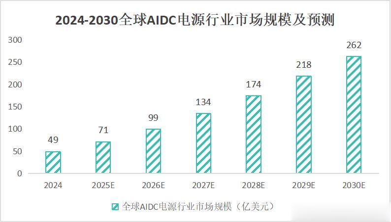 根据弗若斯特沙利文数据,全球AIDC电源的市场需求预计将从2024年的49亿美元,增长到2030年的262亿美元,年复合增长率达32.2%。