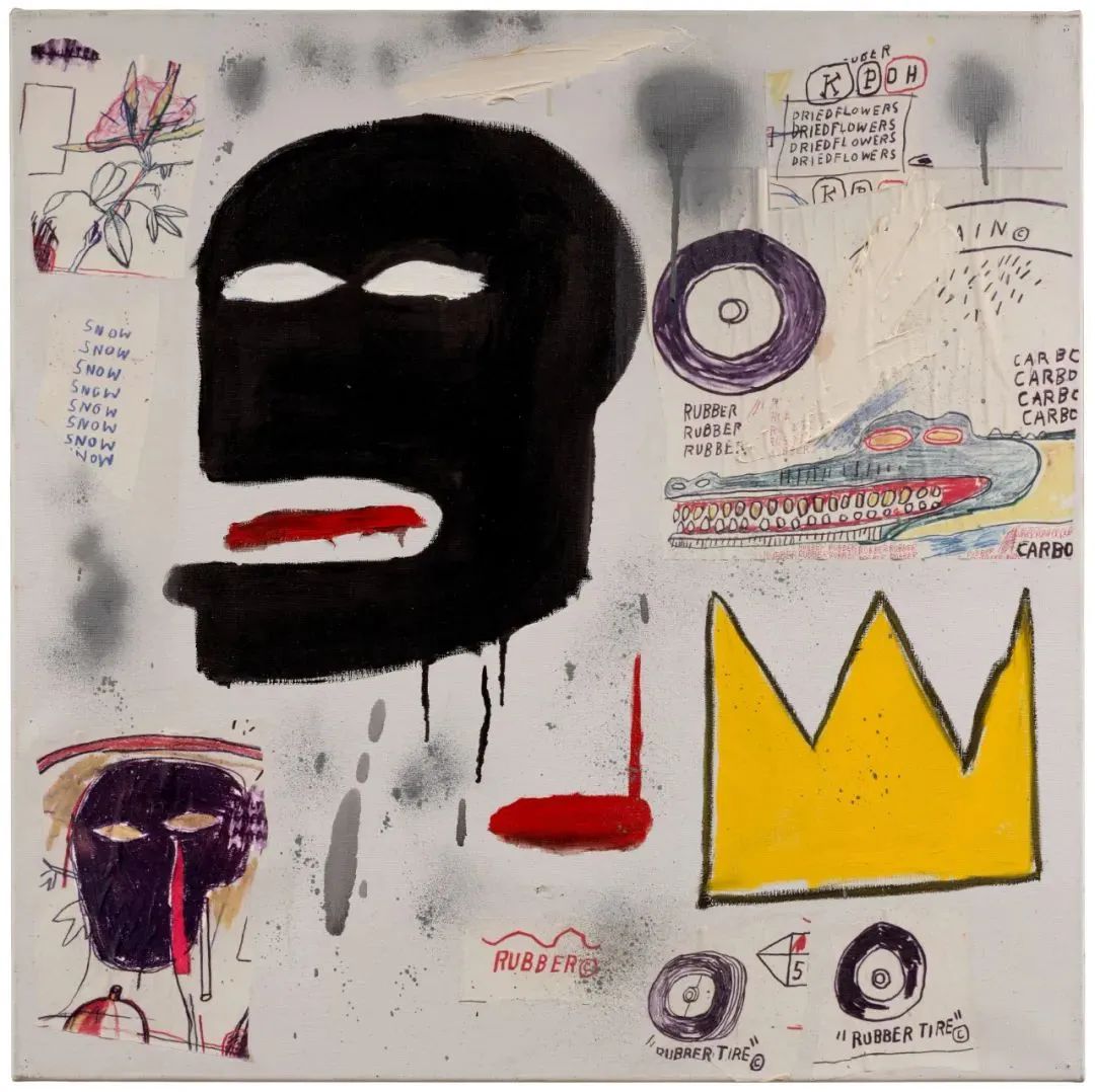 让-米歇尔·巴斯奎特,《给布鲁诺的圣诞画》,混合媒材 画布,81x81cm,1984年 © 让-米歇尔·巴斯奎特艺术资产,纽约Artestar授权,比绍夫伯格收藏,苏黎世曼内多夫