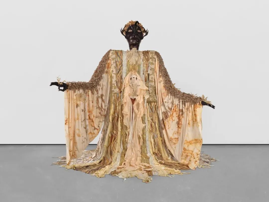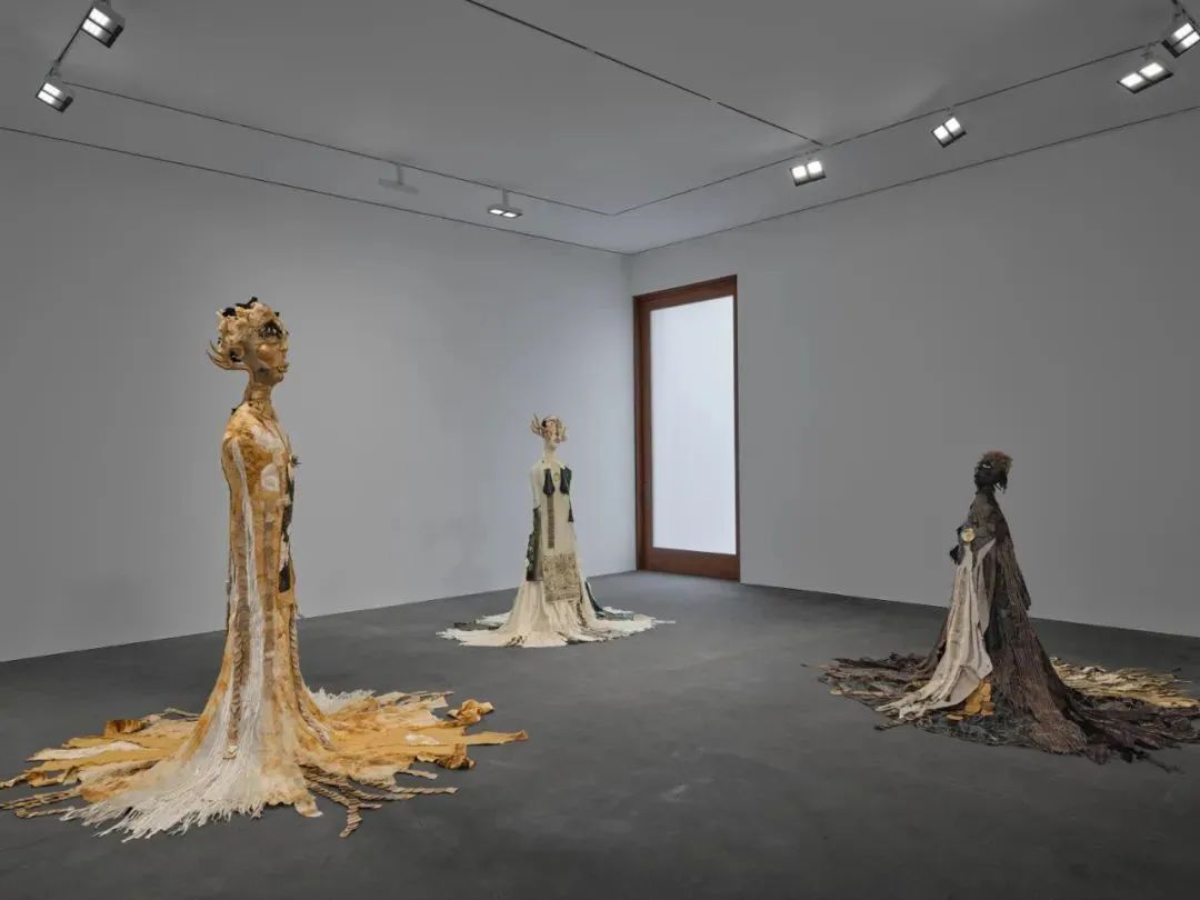 加拿大非裔艺术家塔乌·刘易斯赋予了回收的服装和面料新的生命。她使用手工缝制、贴花、雕刻、组装等劳动密集型技艺把收集到的材料制成大型作品。她将这种升级回收的操作比作离散的艺术创作和生存方式,并将其作品置于黑人文化生产的悠久历史、朝气的当下和神谕的未来之中。