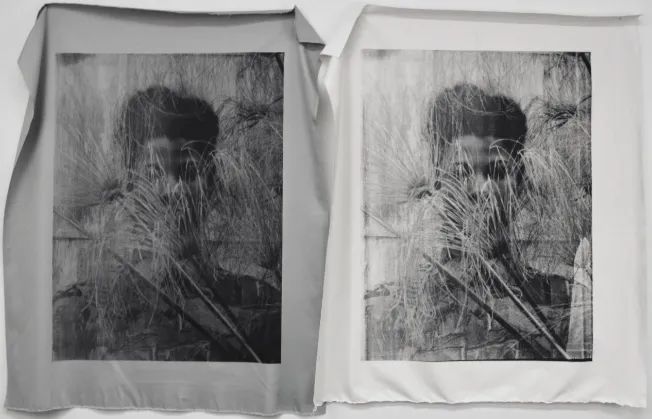 佐拉·奥普库,《莎草纸》,灰色和米白色棉布丝网印刷,79x105cm,2015