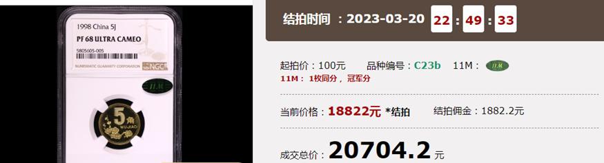 这枚天价硬币正是1998年发行的精制币,更难得的是,它经过NGC评级达到68分的冠军分,币面保留着原始光泽,形成独特的环状包浆,且无任何明显氧化点。要知道,1998年精制梅花5角仅发行20000套,历经多年保存,多数已出现氧化损耗,如此完美品相的藏品实属凤毛麟角,天价成交也在情理之中。
