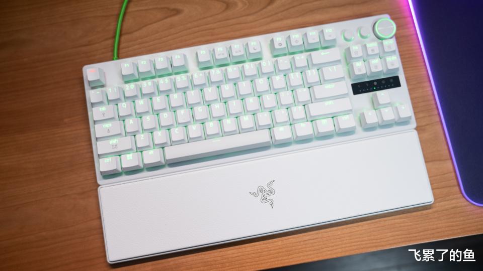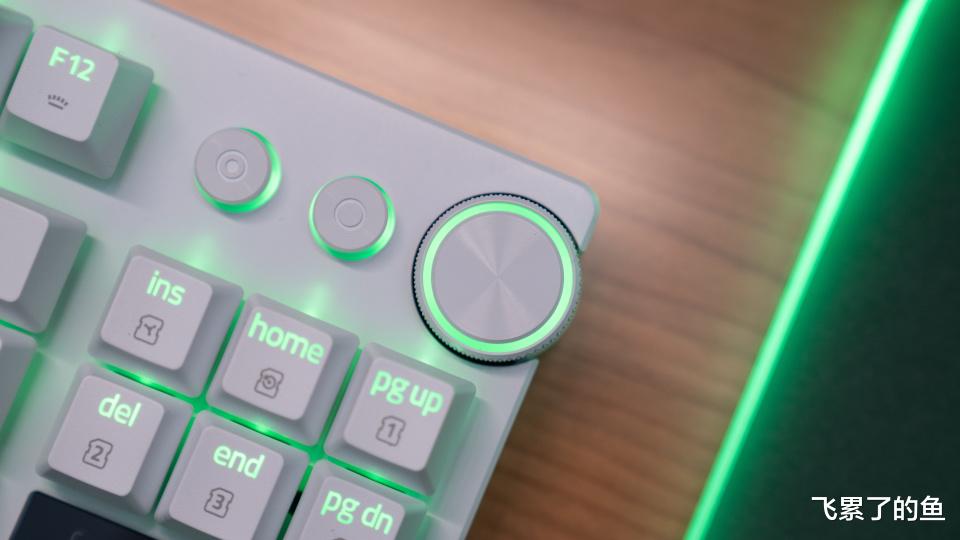 键盘右上角多功能旋钮和2颗控制按键的做工、质感也都很在线,雷蛇这种大厂的细节把控大可放心。