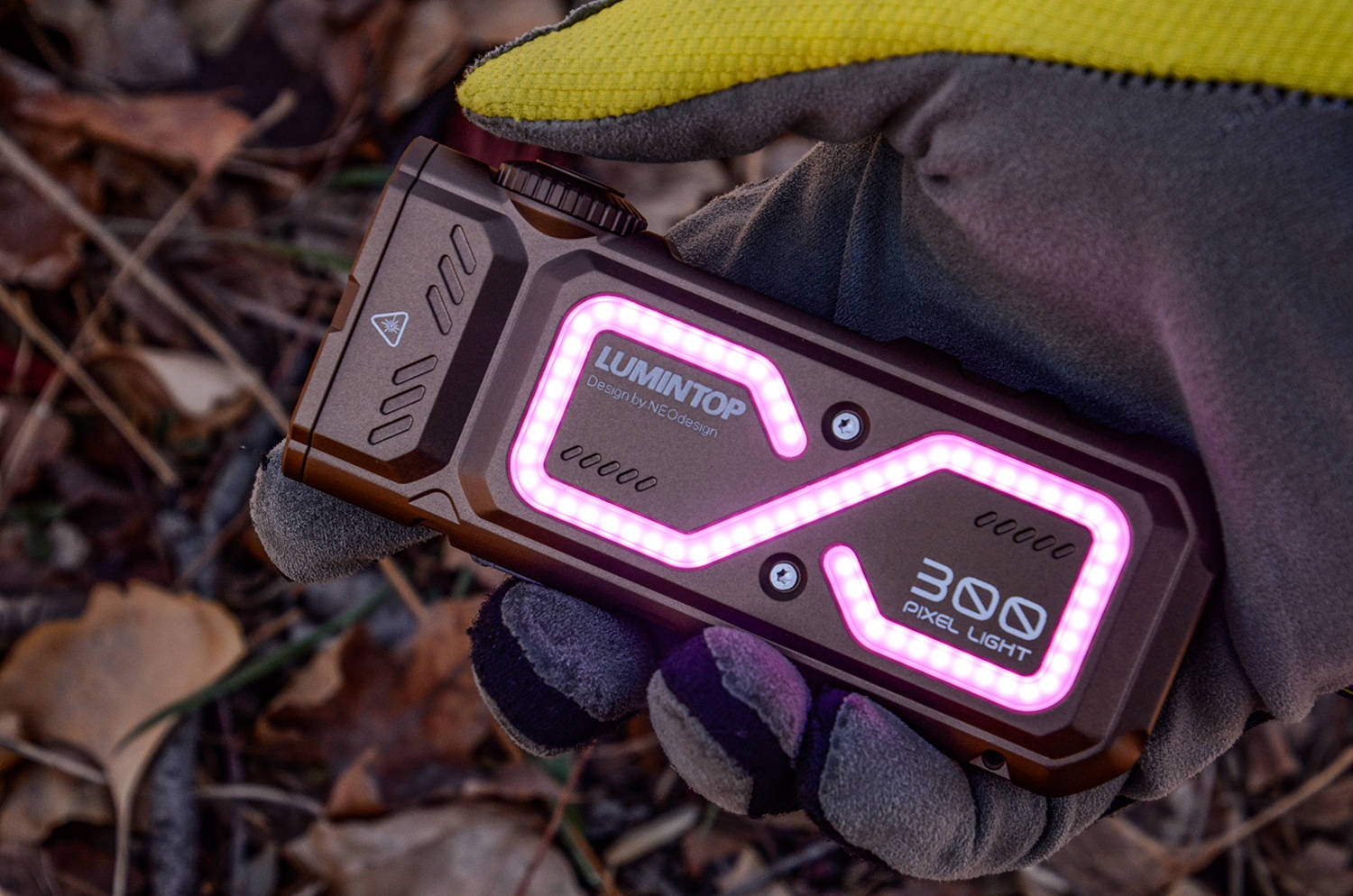 这就是LUMINTOP雷明兔最新推出的光影玩具——PIXEL像素手电,具备双灯珠、双面副灯,以及紫外灯、绿激光、数据屏显,聚光 1000 流明、泛光 1300 流明,远射通透、近照柔和,RGB 像素灯支持动态渐变与互动玩法,兼顾日用与把玩,小而精,简而美。