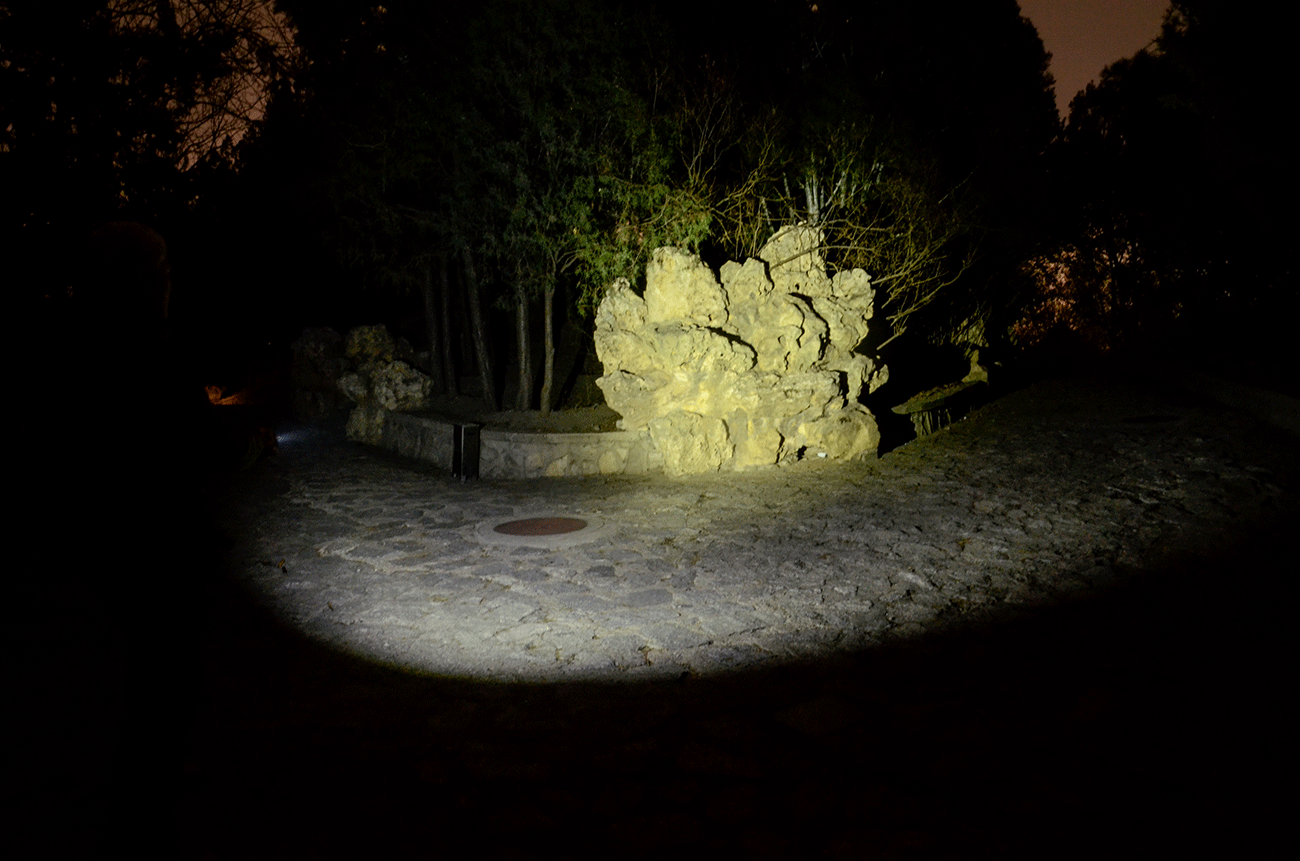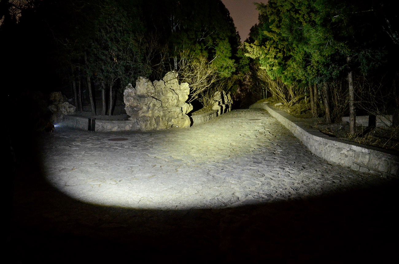 聚光位正白光色温,最大光通量为1000lm,中心亮度高,形成正圆形的光斑,最远照明距离达到265米,泛光区形成辅助照明,光线的连续性、通透性很好。