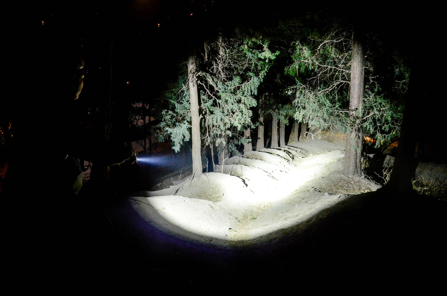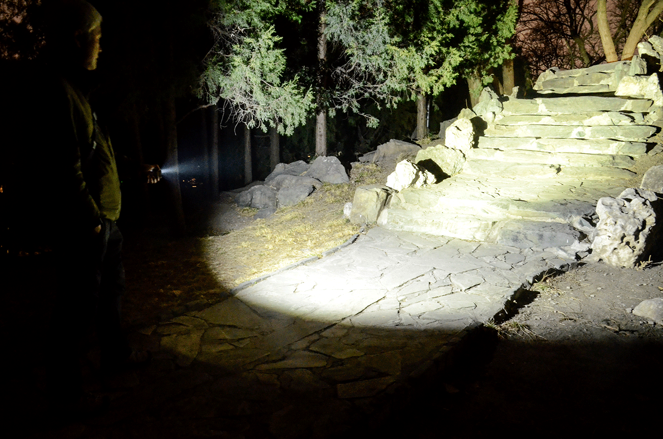 泛光的色温偏低一些,最大光通量为1300lm,照明范围更大,人眼的视野更开阔,最远照明距离也能达到百米开外,光线铺路效果好,整体的配置更适合走夜路使用,