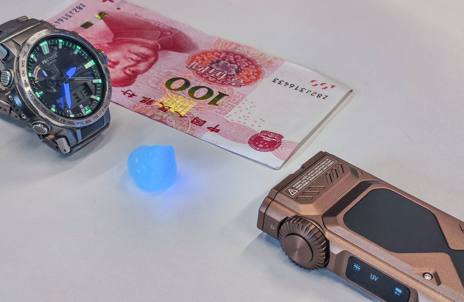 紫外光UV能激发荧光反应,用来检测荧光剂、鉴定玉石琥珀、验钞防伪、户外搜寻血迹,还能在露营时照亮荧光标记、触发夜光材料,是日常检修、收藏鉴定、户外应急和生活清洁里非常实用的隐形“检测灯”。