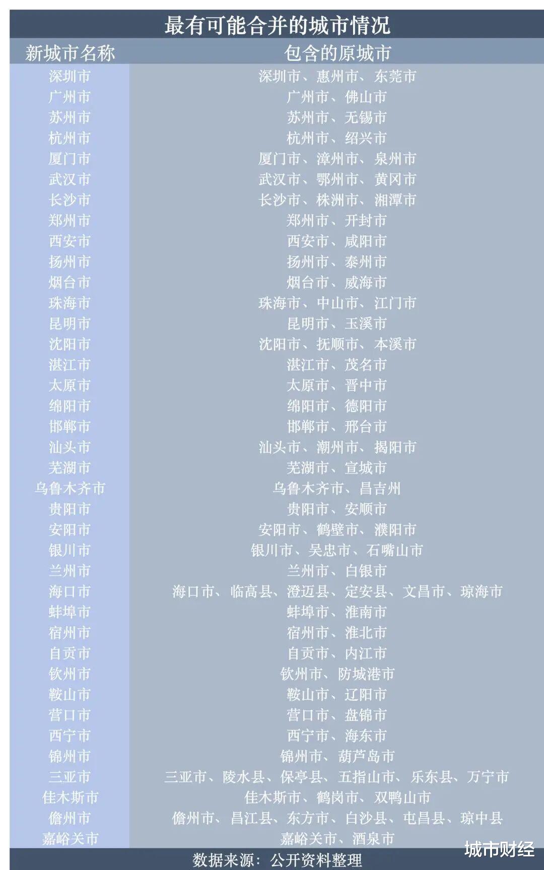 还有南京合并镇江、苏州合并无锡(甚至常州),鄂尔多斯合并乌海,酒泉合并嘉峪关,长沙株洲湘潭,厦门漳州合并等。