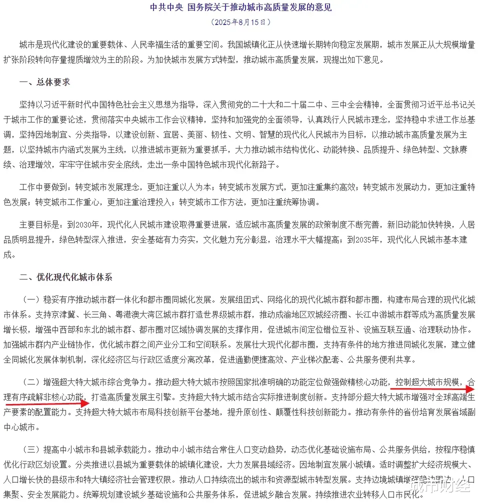 今年8月28日,国务院发布了《关于推动城市高质量发展的意见》,其中明确提到: