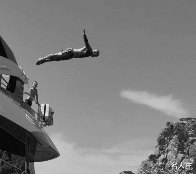 58岁的杰森当真是老当益壮,从游艇上一跃而下,硬汉气质拉满。