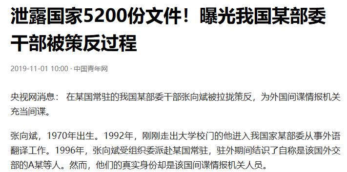 张向斌没能抵制住诱惑,一步步沦为间谍。