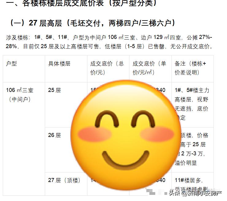 藏不住了!济南建发雍泉府最新成交底价表曝光,106㎡刚需户型底价竟低至150万内,143㎡精装改善底价直降20万!还叠加5万赠车位的限时福利,想在东部抄底改善房的朋友,这份底价攻略一定要收好。