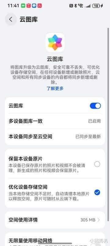 首先,就是解决他最头疼的“存储焦虑”。开启云图库的“优化设备存储空间”功能后,手机里的所有照片、视频和文件都会以高清原件的形式,安全地存储在云端。而手机上早期的照片视频只保留一个用于预览的较小版本,瞬间就能释放出大量的存储空间。