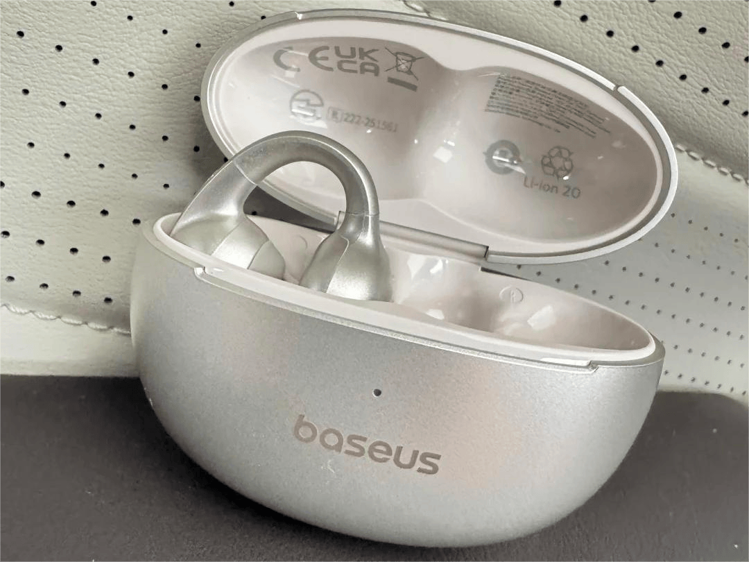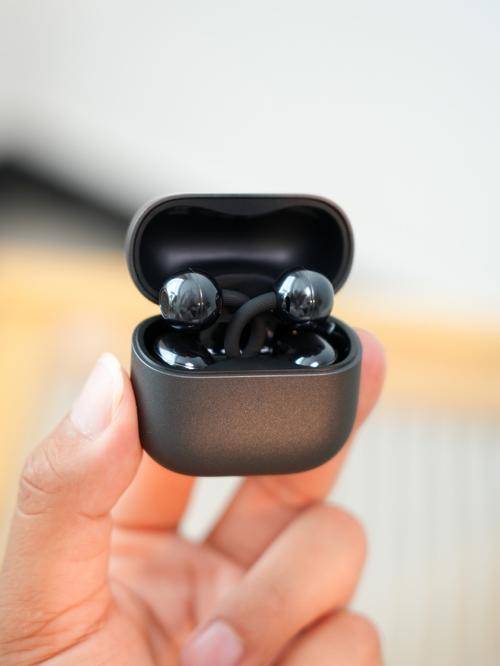 耳夹式耳机买什么牌子,单耳约 5.1g,结合创新 C 形桥结构,能自然顺着耳廓贴合,不挑耳型、不易松动。佩戴舒适度优秀。充电盒体积紧凑,但盖子阻尼较紧,单手开盖需要稍微用力。