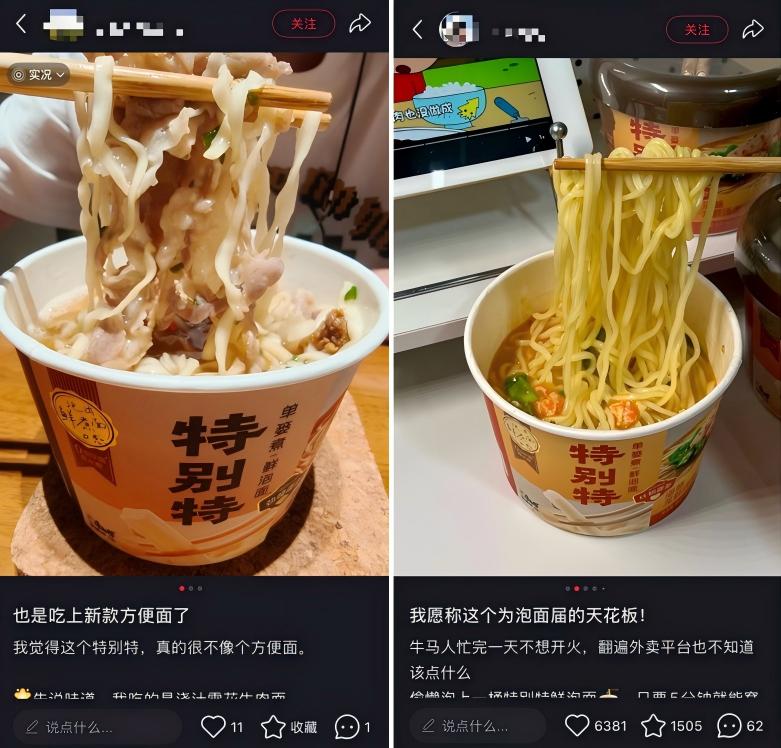 康师傅“特别特鲜泡面”成为小红书上的大爆品。社交平台截图