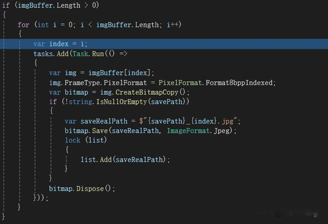 因为使用的是线程池来执行取图逻辑,那么在当前线程里面直接取i是有问题的!因为i的作用域是在循环内部,但是,循环内部如果执行的是一个线程,那么每一个线程所获得到的i和这个线程的作用域不一样,那么就会导致这个线程取到的i实际并不是顺序的!