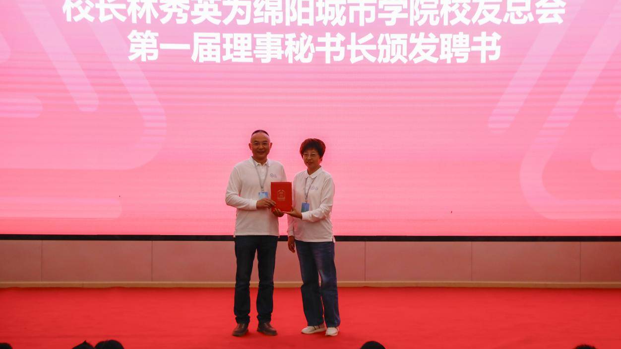 校领导共同为“绵阳城市学院校友总会”揭牌并为校友会秘书长、理事颁发聘书,标志着校友工作进入规范化发展阶段。