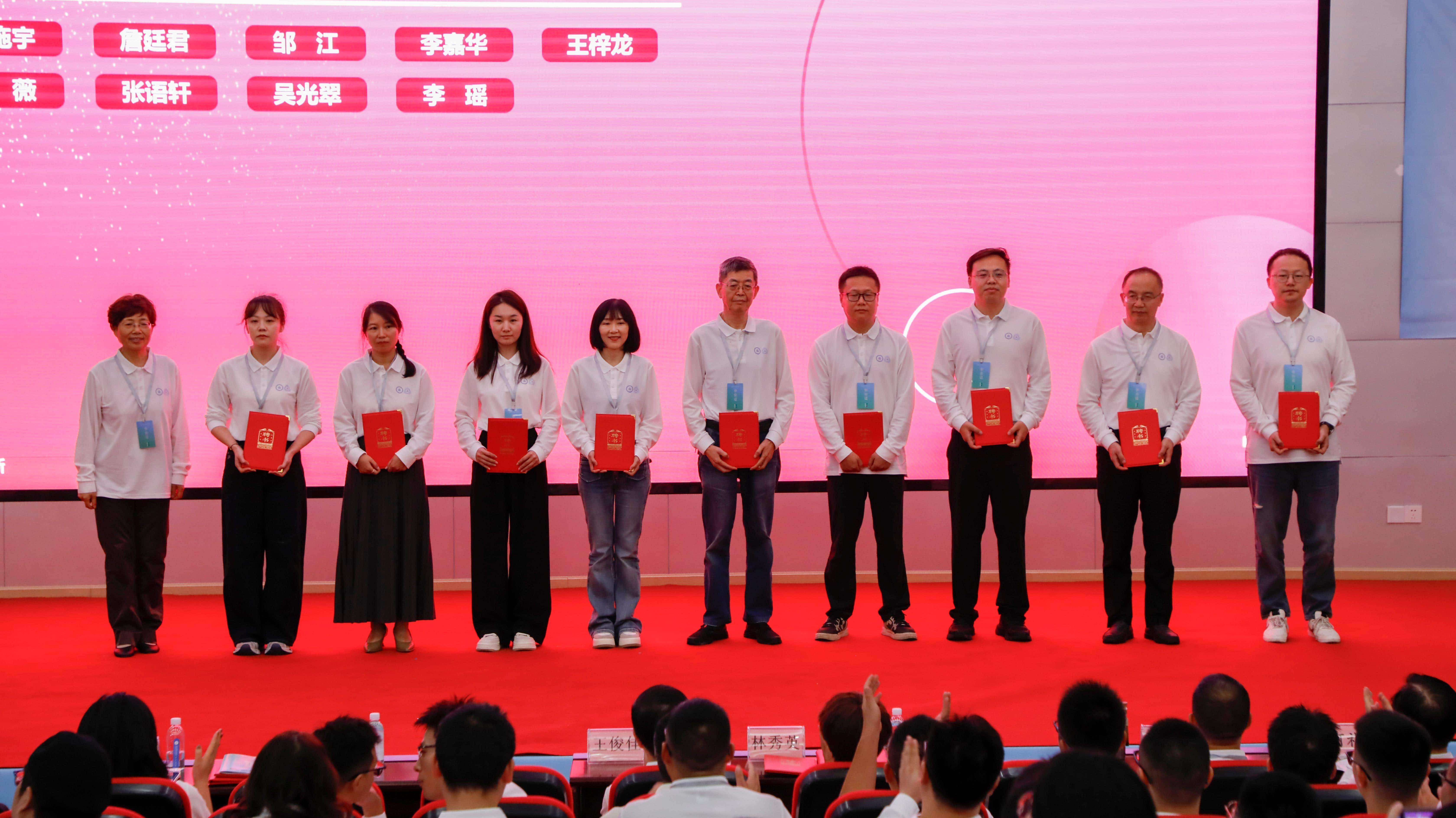 在授牌仪式环节,校党委书记王俊佳为校友总会会长、副会长颁发聘书,副校长左申兵向校友总会授旗,象征着校友工作的正式启航。