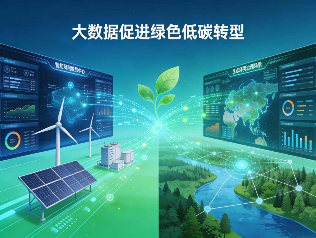 四、大数据促进绿色低碳转型1、推动能源消费绿色化低碳化“十五五”规划建议提出,要加快建设新型能源体系,提高终端用能电气化水平,推动能源消费绿色化低碳化。大数据在这一过程中可以发挥关键作用,通过实时监测能源消费数据,分析能源使用效率,提出节能减排的建议和措施。同时,大数据还可以促进智能电网和微电网的建设,提高能源系统的互补互济和安全韧性水平。