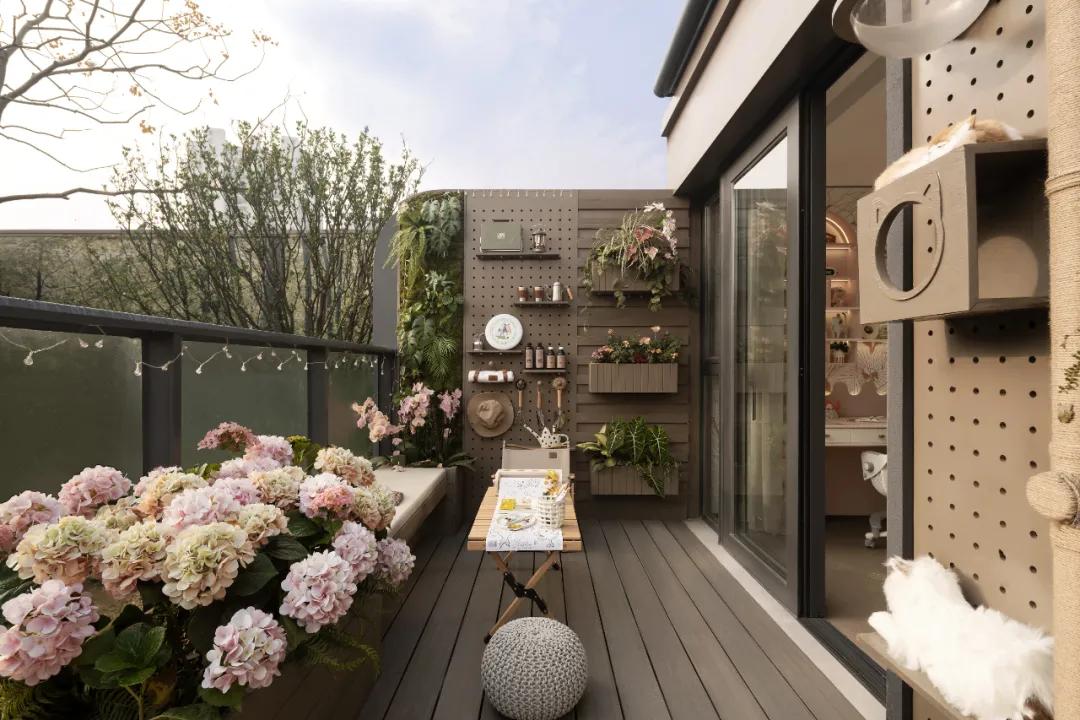 露台是童话奇遇的户外篇章。设计防水基层与绿化花箱,搭配小帐篷、LED灯串和小露营桌,营造“云端精灵庇护所”的主题场景,将自然的课堂搬进空中庭院,让孩子在自然的怀抱中,拥抱充满魔法的童年。