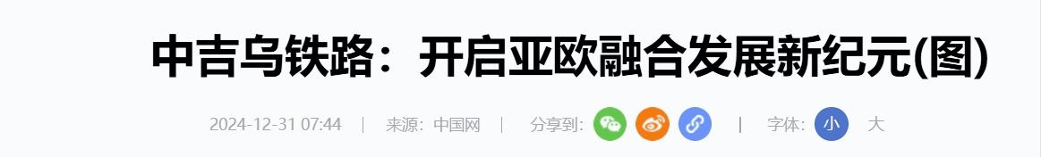 去年12月,这个项目已经在吉尔吉斯斯坦举行了启动仪式,预计6年建成。到那时候,货物能够绕开俄罗斯与波兰,径直从中亚向南行进,继而连接伊朗以及土耳其,进而通往欧洲与中东。