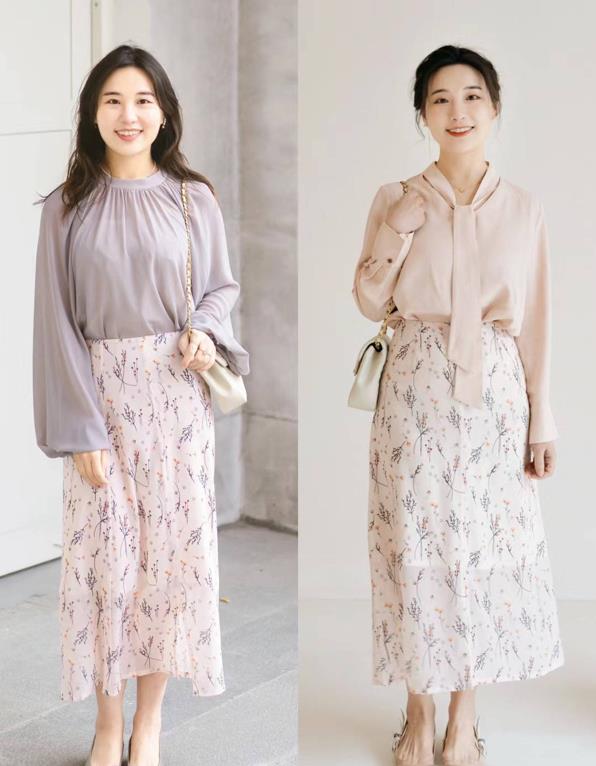 示范【2】过膝裙搭配各种鞋子,轻松打造春日造型