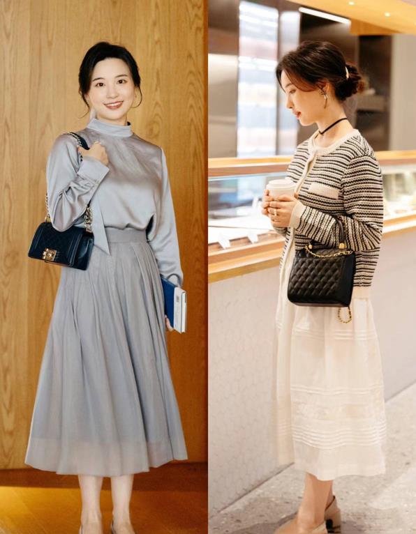 通过这些对比,我们可以发现,各种款式的过膝裙和浅口鞋的搭配都具有独特的风格和魅力, 比如正装通勤的OL风格的搭配就更适合搭配低跟的浅口鞋,展现出正式感;休闲风的过膝裙搭配平底浅口鞋,可以借助浅口鞋的简约感来削弱繁琐的裙摆,让整体更加利落。