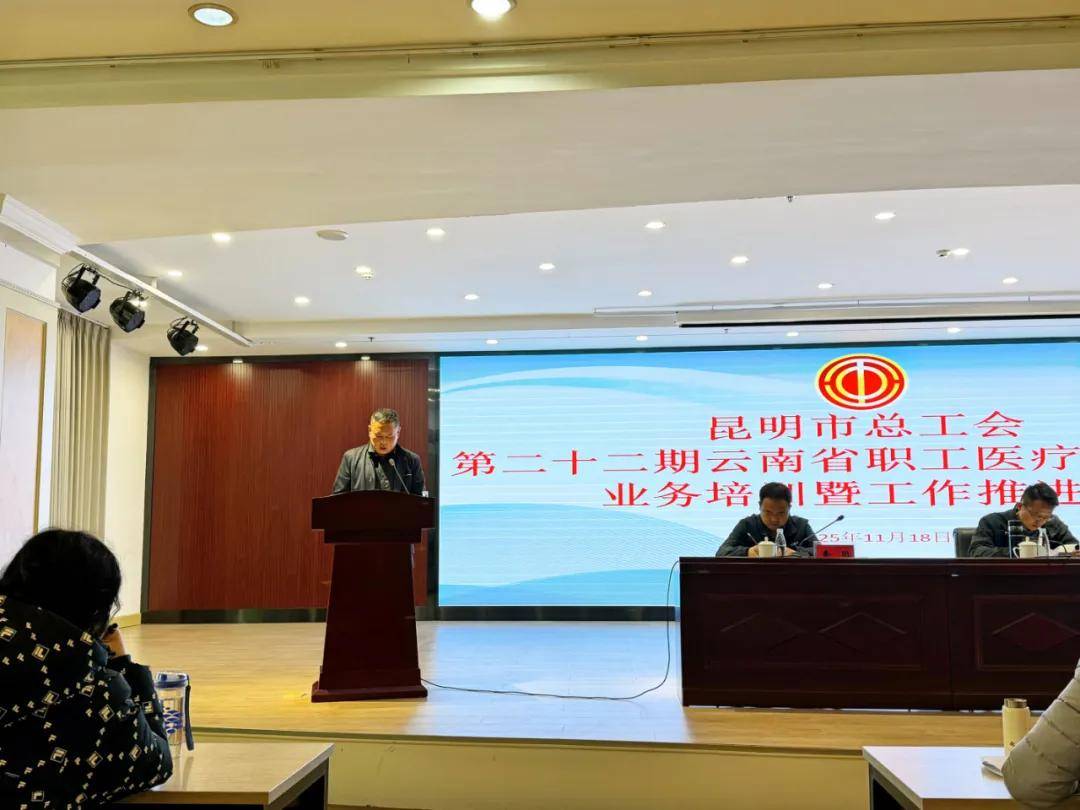11月18日,昆明市总工会召开第二十二期云南省职工医疗互助活动业务培训暨工作推进会。昆明市总工会党组副书记、常务副主席候选人杨武振出席会议并作工作部署,市总工会党组成员、经审委主任赵斌主持会议。