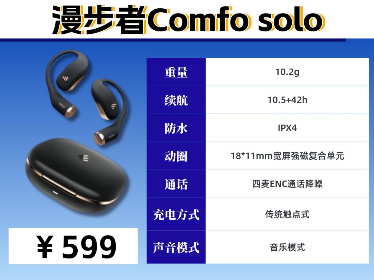 如果对音质有一定要求,还想续航更持久的,漫步者Comfo solo可以冲。虽然耳机重量稍大、便携性一般,但整体表现很在线,续航和音质的优势特别突出。