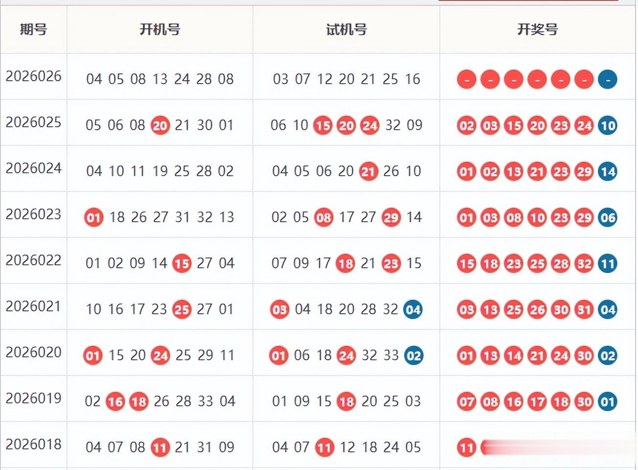 2026026期双色球红蓝及最近三十期数据统计