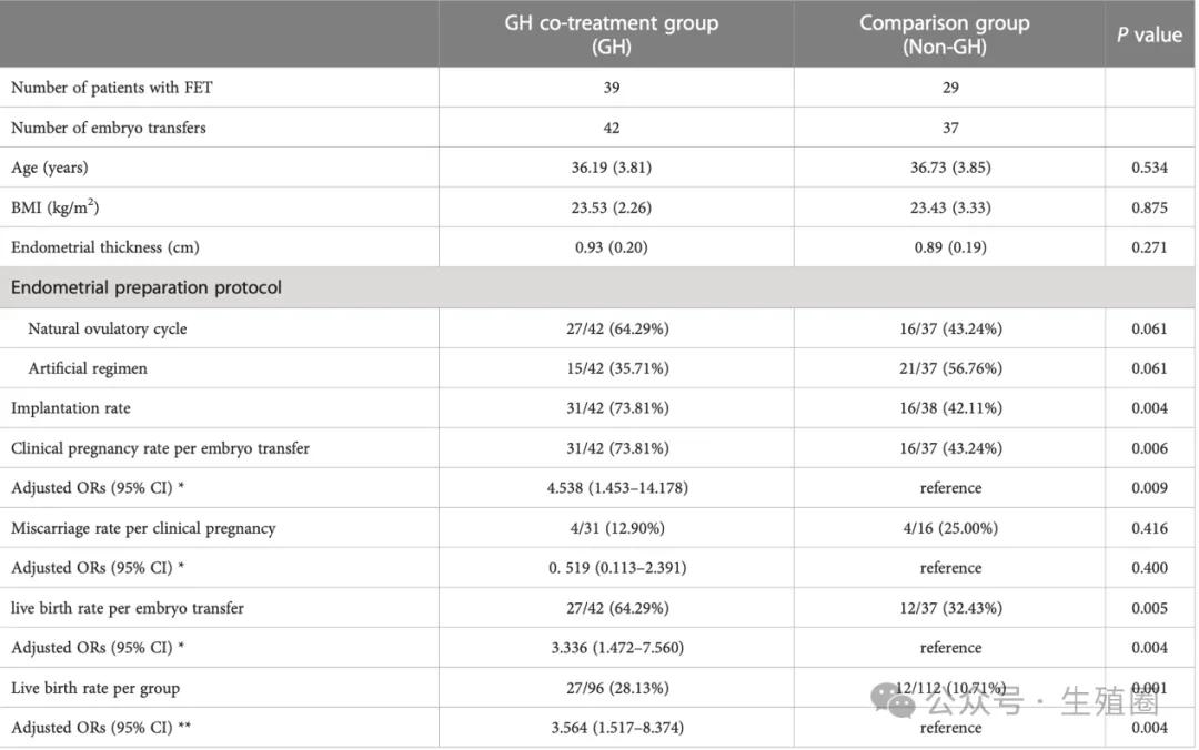 这么多研究汇总起来看,使用生长激素的女性,其怀孕率、胚胎着床率和活产率,似乎比不使用的女性要高。