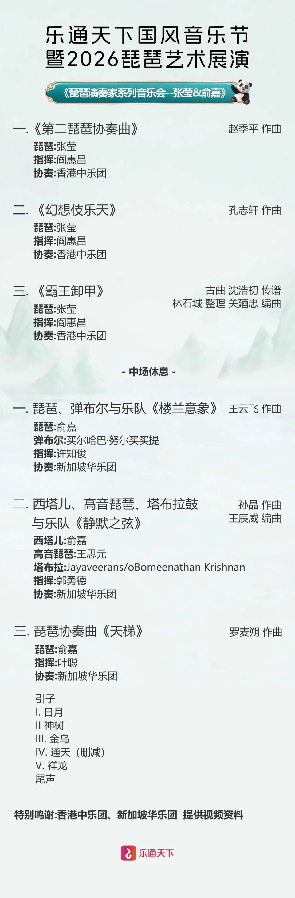 3月6日19:00,乐通天下国风音乐节暨 2026 琵琶艺术展演《琵琶演奏家系列音乐会--张莹&俞嘉》将在乐通天下进行展播,引领听者穿越时空,感受那千年流转的诗意与情感。