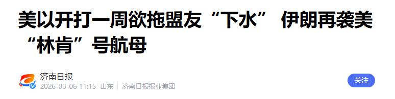 2.《美以开打一周欲拖盟友“下水” 伊朗再袭美“林肯”号航母》2026-03-06 11:15 | 来源:济南日报