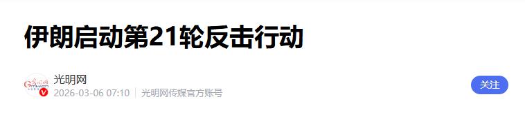 1.《伊朗启动第21轮反击行动》2026-03-06 07:10 | 来源:光明网