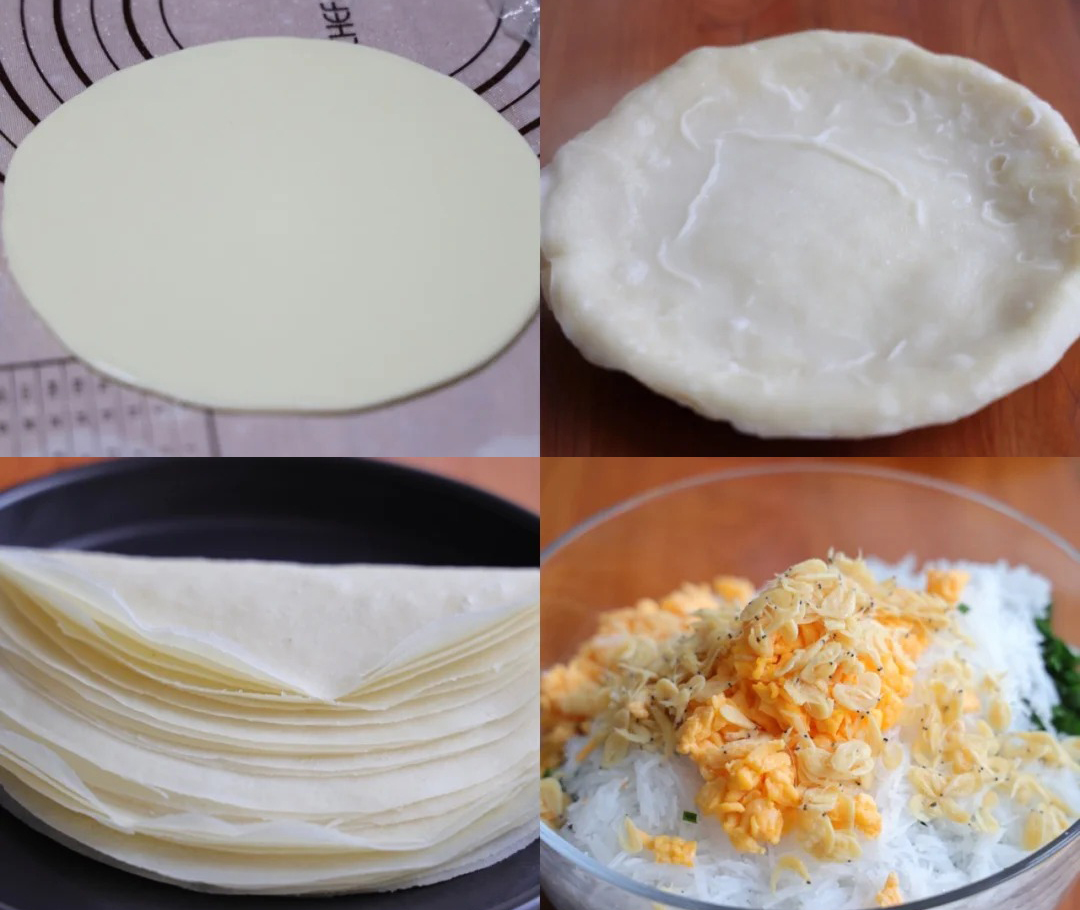 5、放在笼屉上隔水蒸15分钟左右,取出来;用盘子把周围不规则的边缘去掉,然后一张张撕开,我们的春饼皮就做好了。