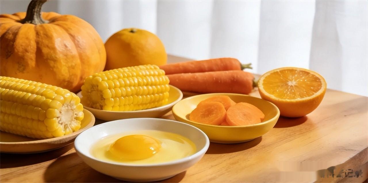 说到护眼,除了深绿色蔬菜外,还有一类常见的“黄橘色”食物其实也很重要,比如蛋黄、玉米、南瓜、胡萝卜、橙子这样的食材,它们富含的主要是玉米黄质和β‑胡萝卜素。这些成分和叶黄素一起,被营养学界称为眼睛里的“黄斑三剑客”,对视网膜健康、视觉功能都有实际影响。