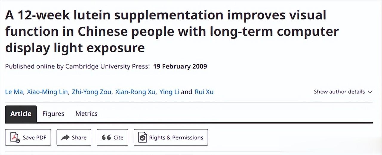 3、《英国营养学杂志》.一项为期 12 周的叶黄素补充研究显示,长期暴露于电脑屏幕光线下的中国人的视觉功能得到改善。.2009
