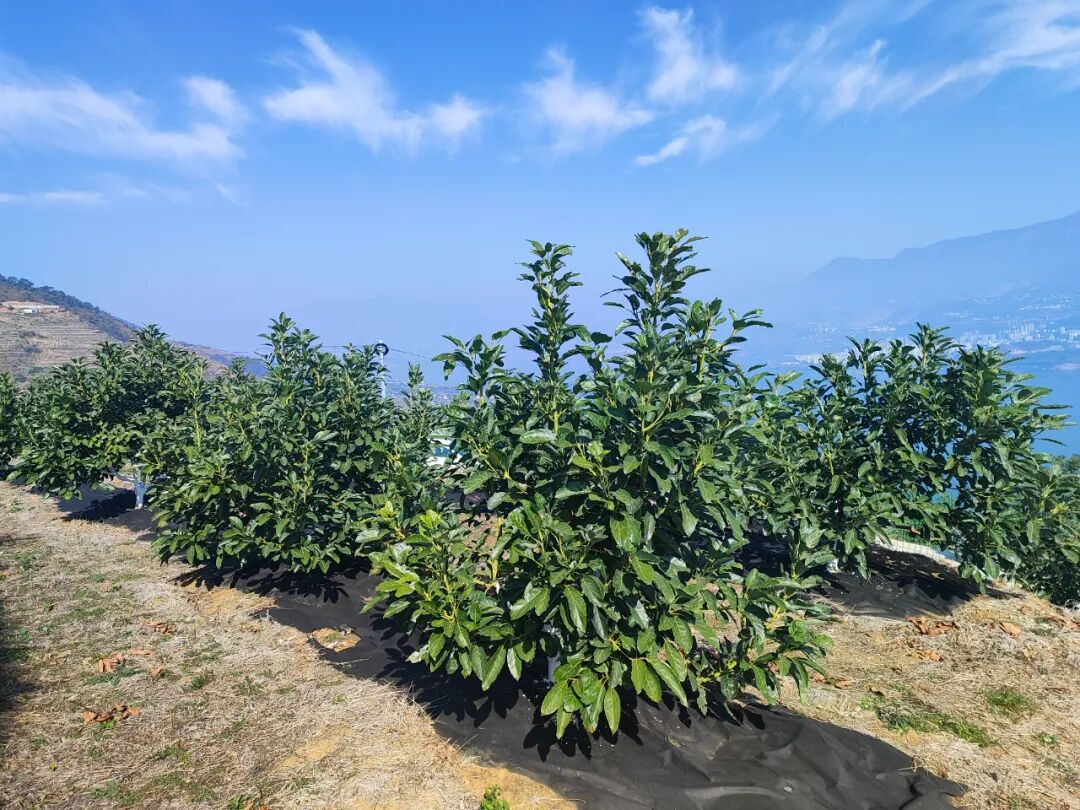 12月11日,走进会东县金江万亩牛油果产业园,冬日暖阳顺着梯田缓缓铺开,成片的梯田顺着山势层叠而下,深绿色的牛油果树依山而立,冬日的树冠依然苍郁,叶面上凝着一层清冷、油亮的光。在果树行间,套种的土豆、豌豆、白菜等农作物青翠欲滴,与牛油果相映成趣,形成了立体种植的生态画卷。三三两两的基地工作人员正穿梭在牛油果树间,忙着进行除草、松土等日常管护工作。经过精心管护,不仅牛油果树长势旺盛,树干粗壮、枝叶繁茂,套种的农作物也长势良好,展现出蓬勃生机。