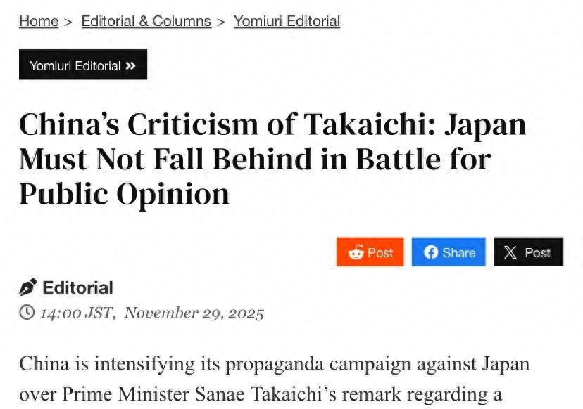 该媒体称,日本不能在和中国的舆论战宣传战中落后。还批驳中国官方媒体画漫画丑化高市早苗,目的是在国际上占领舆论阵地,即高市早苗正试图破坏二战后的国际秩序。中方试图在全球孤立她,最终撤回言论。