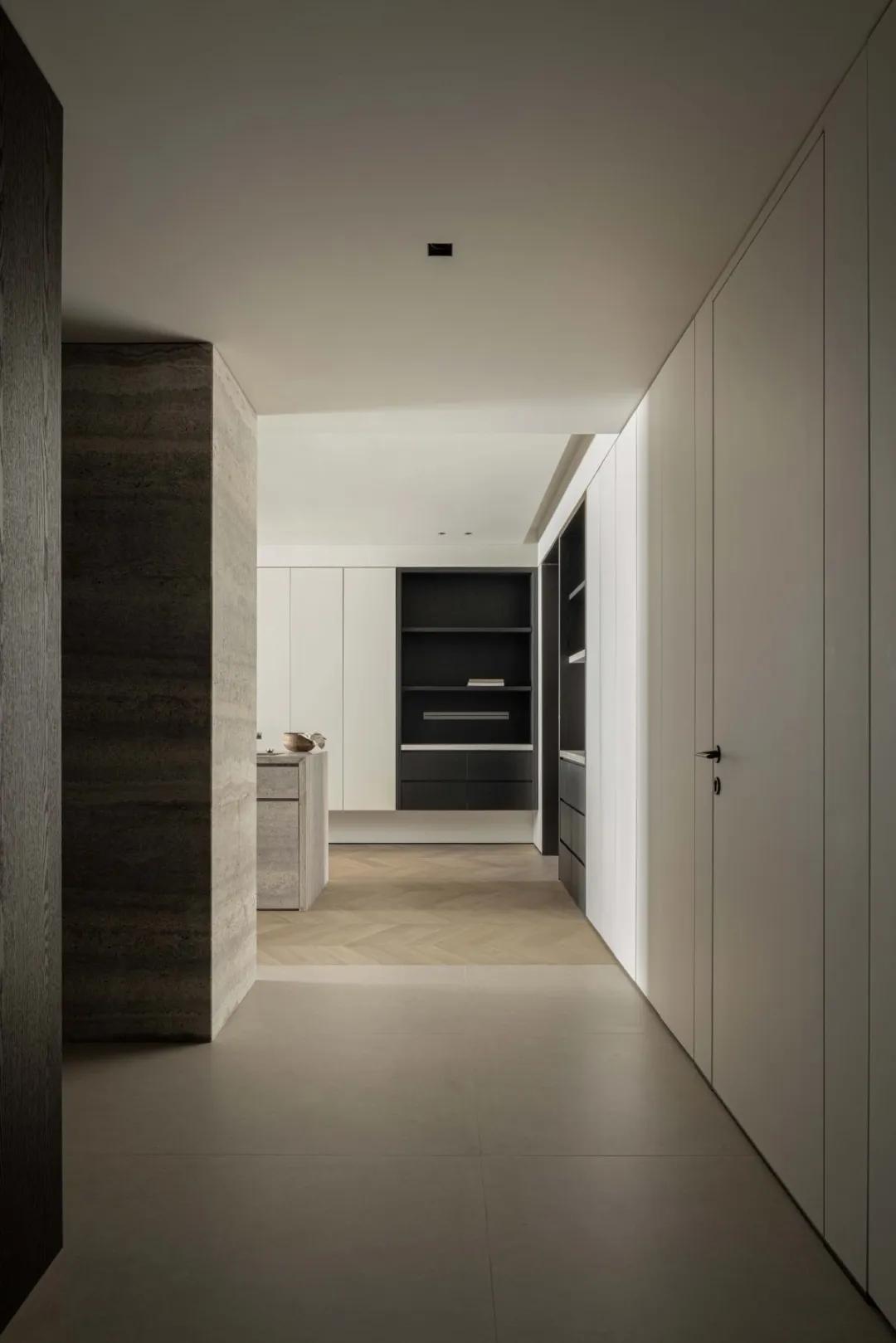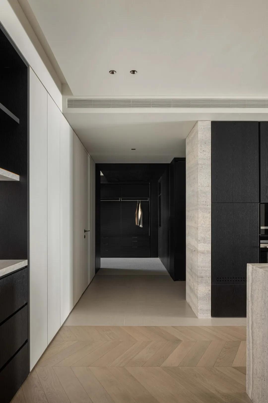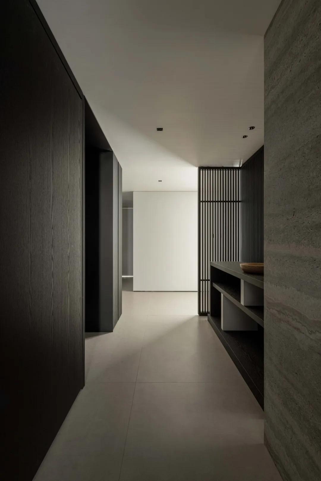 廊道成为身心由外向内的起承转合节点,灰洞石与黑橡木相融,勾勒出家的构架,锚定了空间给予人的自然感受。深入生活的细枝末节,促成最优的行走动线,让空间连贯且流动,居者间的互动关系,注入生命的活力。