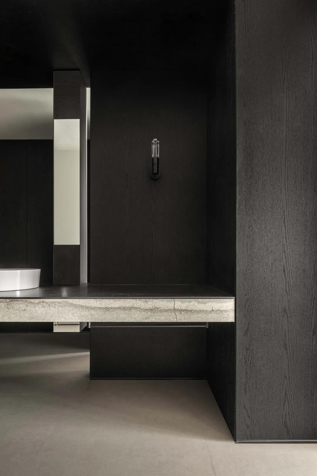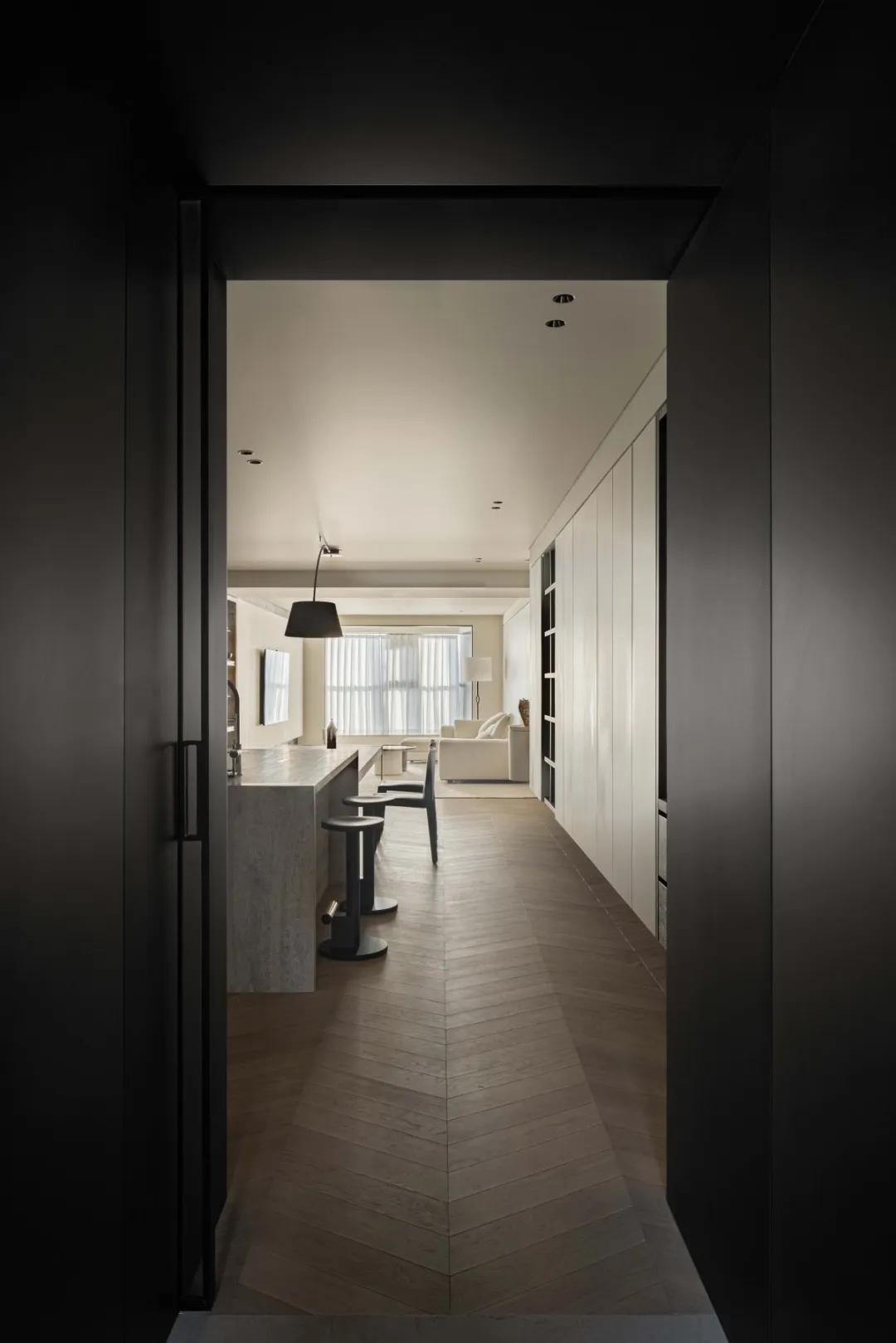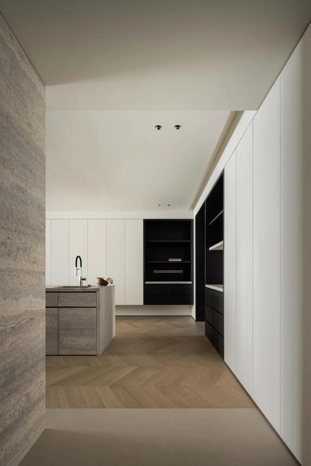 廊道成为身心由外向内的起承转合节点,灰洞石与黑橡木相融,勾勒出家的构架,锚定了空间给予人的自然感受。深入生活的细枝末节,促成最优的行走动线,让空间连贯且流动,居者间的互动关系,注入生命的活力。