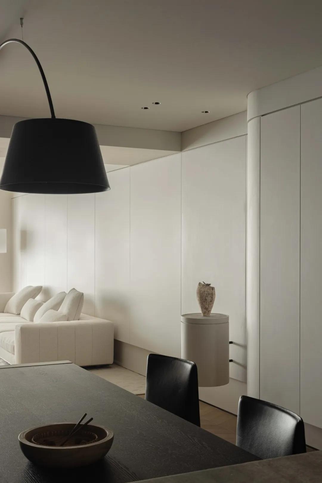 空间的松弛情绪,源于对纯粹本真的回归,仰仗材质的节奏,细部的雕琢,生发丰盈的内涵。黑白经典色调如韵律般,交汇流转,让空间成为情感和记忆共鸣的容器。颜色之美升华为更上乘的意境之美,一室静谧被温润的治愈力拉开情绪张力。